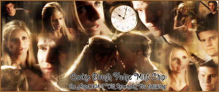 You've reached Cookie Dough Fudge Mint Chip a fansite and the only fanlisting listed at The Fanlistings Network for I Will Remember You the 8th episode of the 1st season of the hit show Angel . This episode is extremely important to any Buffy/Angel shipper. The episode first aired November, 23rd 1999 in the US. If you are a fan of this episode, please consider joining the listing!Mariah opened this fansite & fanlisting on June 21st 2002. I will be forever grateful to her for handing it over to me. Please checkout the fansite extras.